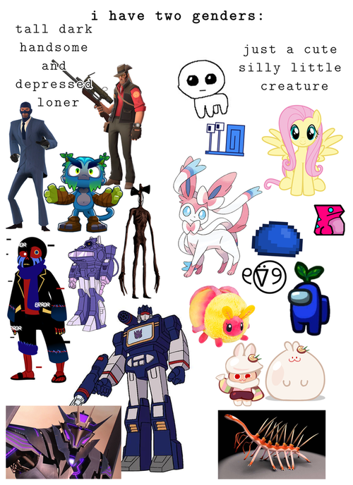 Also made this lil thing a while ago! I was actually making just one big thing with characters that are Gender to me but then I noticed how there was a clear divide betweeen 2 sides so I made this instead.